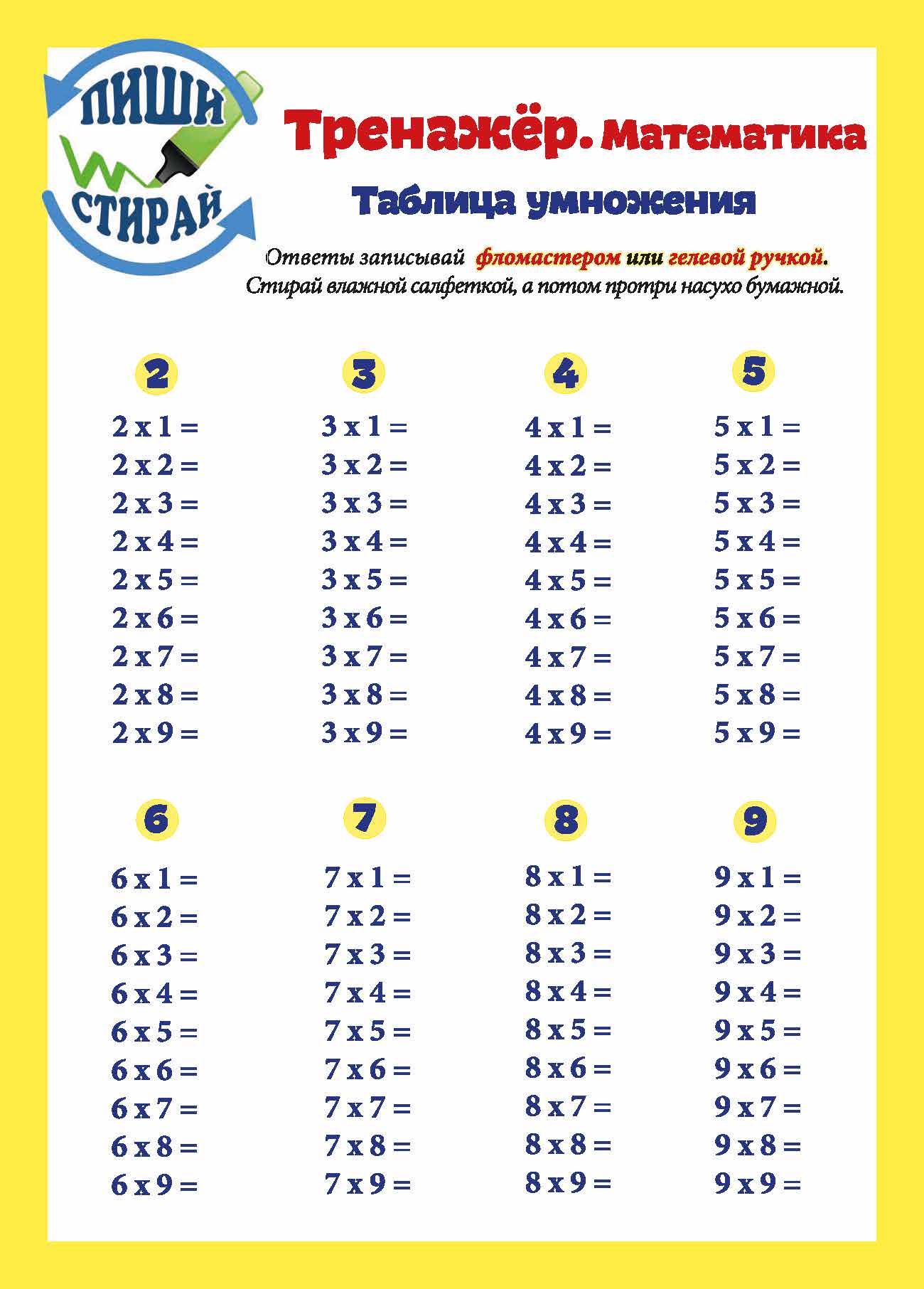 Таблица умножения без ответов - распечатать тренажер бесплатно - Скачать и распе