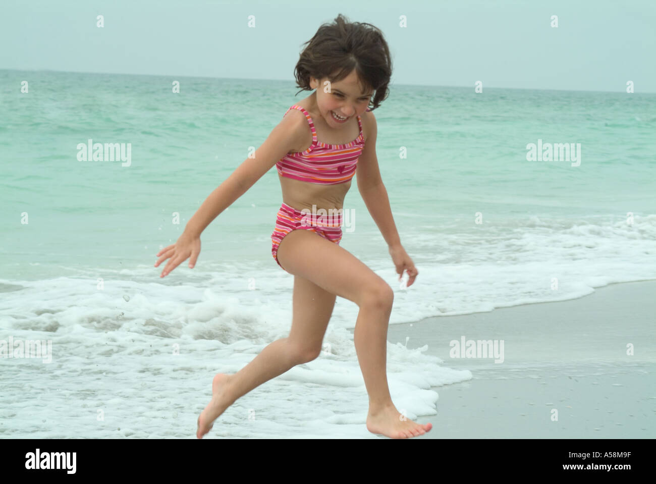 young girl playing at waters edge on beach while on vacation Stock Photo - Alamy
